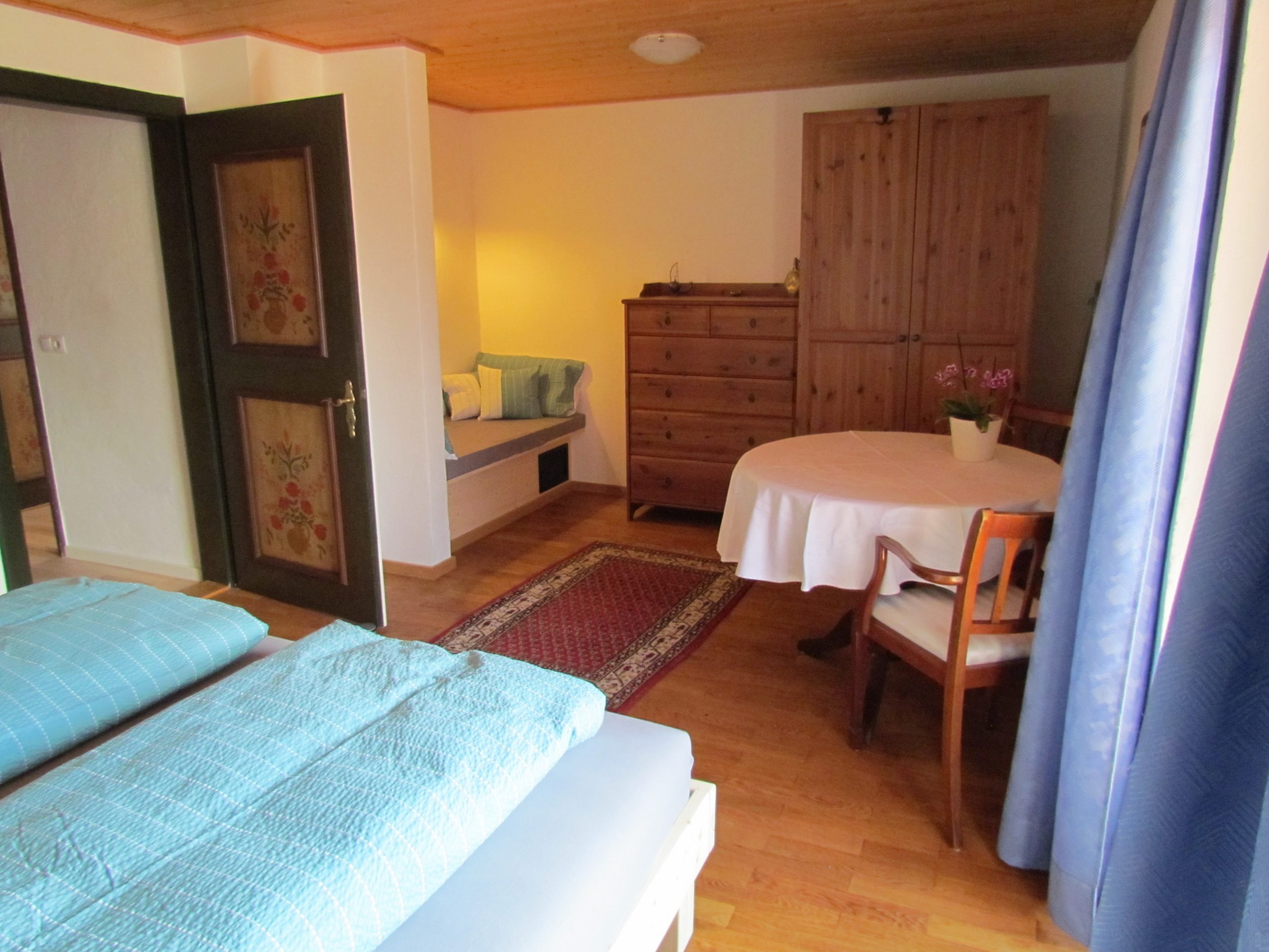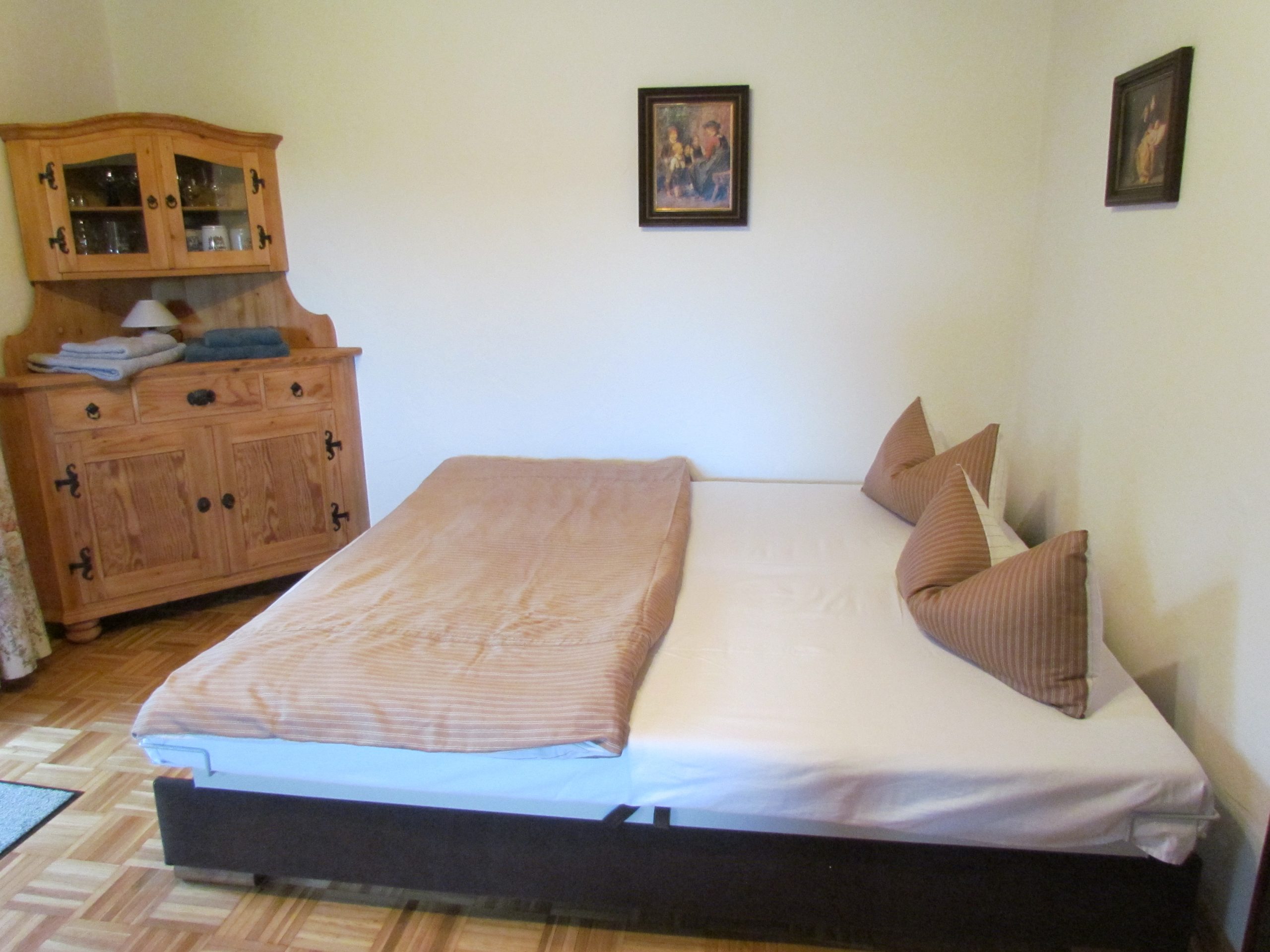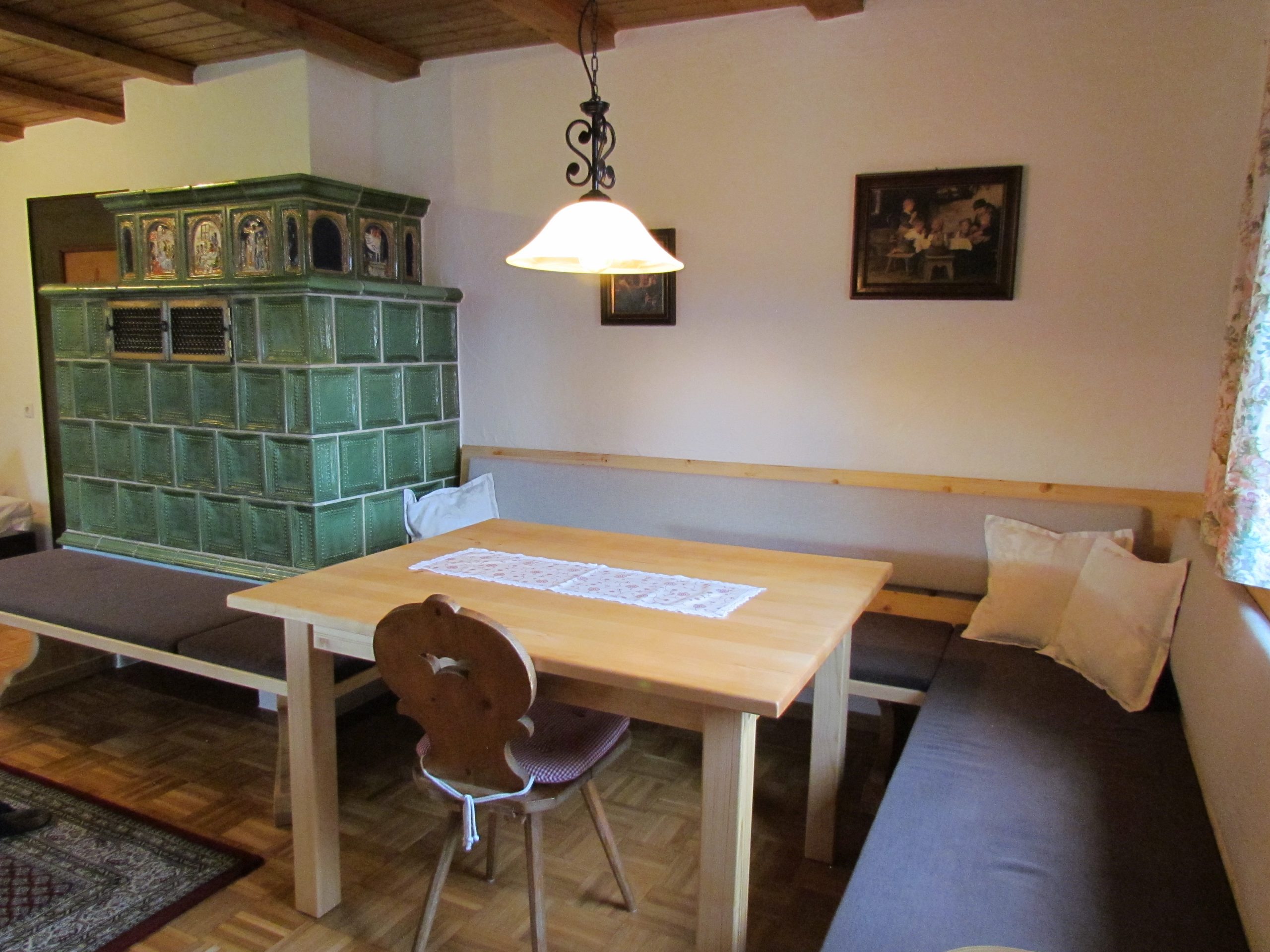 gemütlicher Kachelofen; Sat-TV, Spiele, Puzzles, kleine Bücherauswahl; auch als 3. Schlafzimmer verwendbar, ausziehbares Schlafsofa für 1 oder 2 Personen (2 richtige Lattenroste) - Bad: