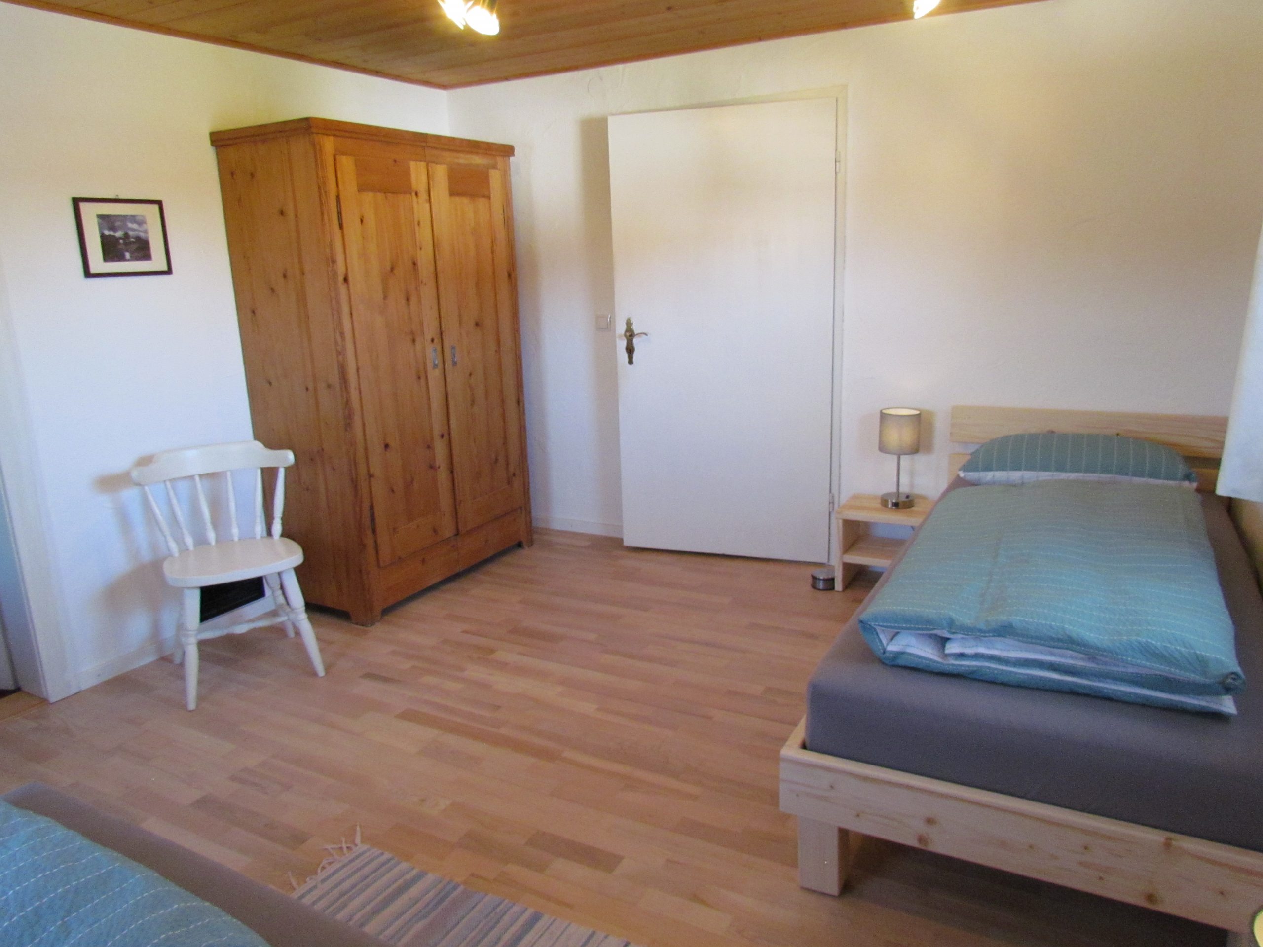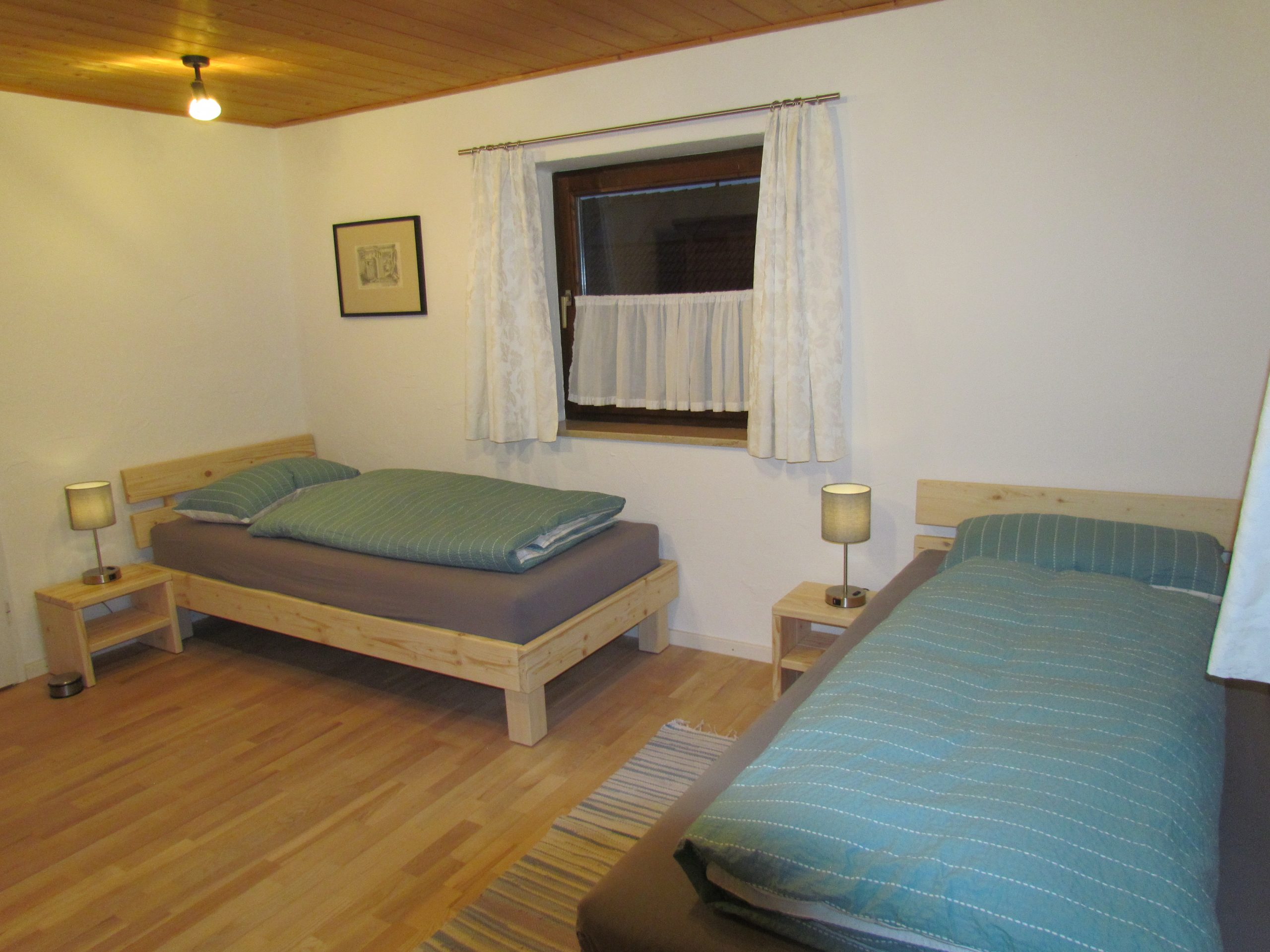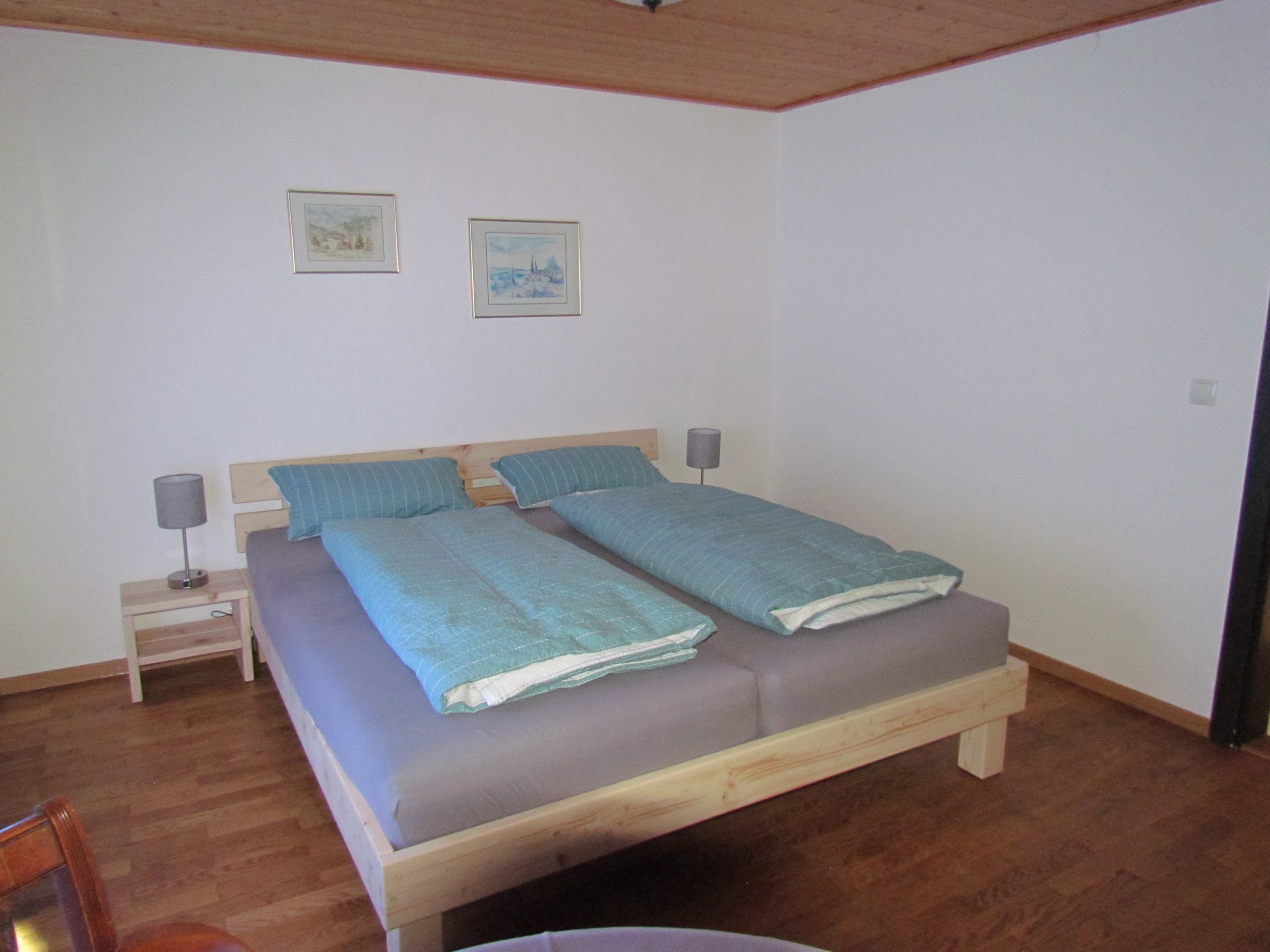 1 Schlafzimmer mit Doppelbett; 1 Schlafzimmer mit 2 Einzelbetten; auf Wunsch Reisebett für Babys und Kleinkinder oder Rausfallschutz fürs normale Bett - Treppe: